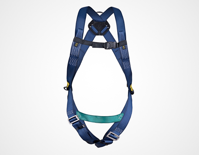 Cinturão paraquedista com dois pontos de conexão para proteção contra quedas, possui alças laterais para descanso de talabarte, fivelas em aço inox e regulagem nas coxas e fechamento peitoral através de engate rápido.